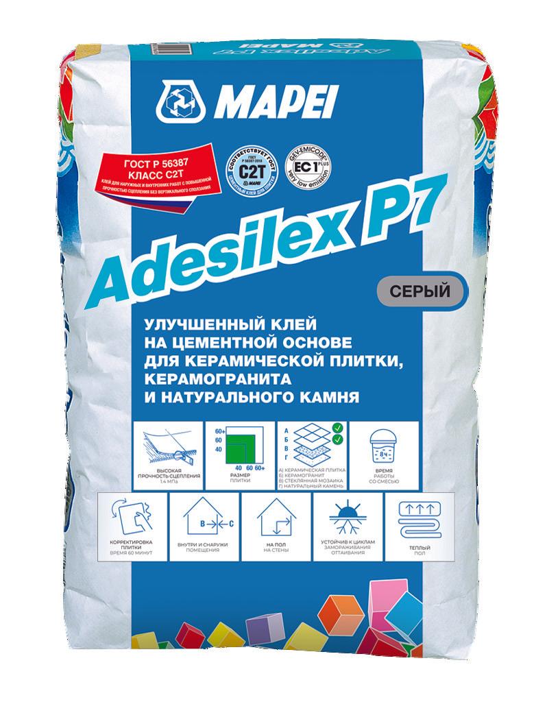 Время корректировки: около 60 минут Пешие нагрузки: через 24 часа Кол-во воды: 6,25–6,75 л на 25 КГ ADESILEX P7 Открытое время: 20 минут Расход: 2,5-3 кг/м² Предназначен для укладки керамической плитки и мозаики, керамогранита на пол, стены и потолок внутри и вне помещений